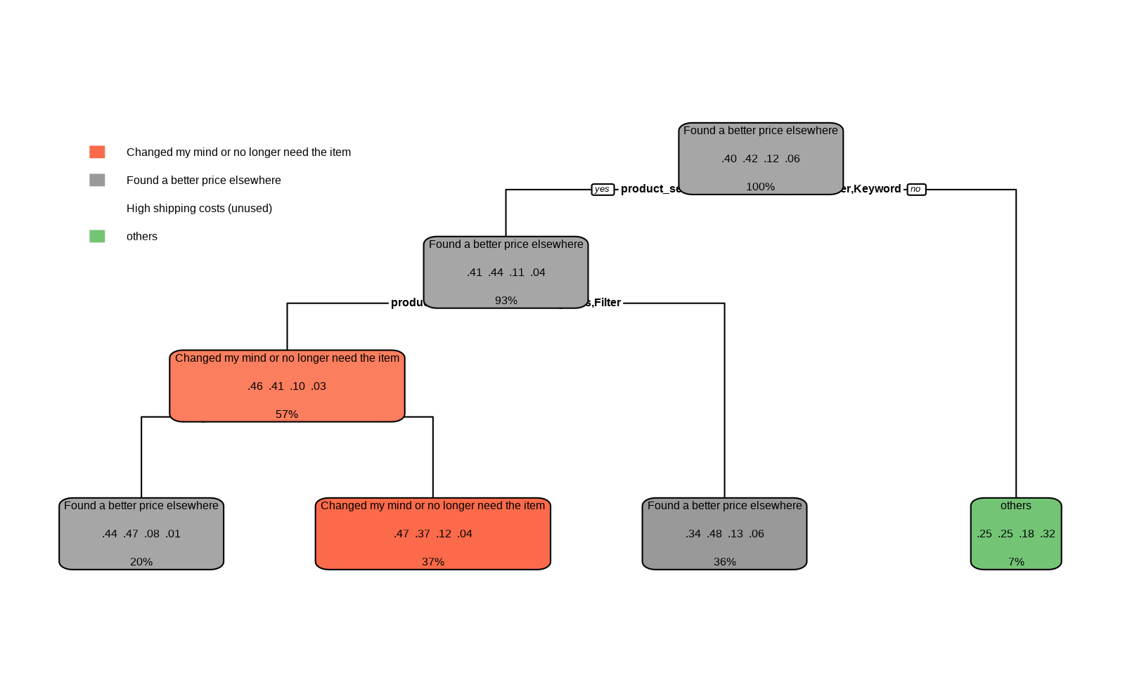 | 21 | Female | Less than once a month | Clothing and Fashion | No | Rarely | categories | Multiple pages | 1 | Yes | Rarely | Changed my mind or no longer need the item | Never | No | Heavily | Yes | 5 | No | 5 | 2 | Wide product selection | Product quality and accuracy | Product quality and accuracy |