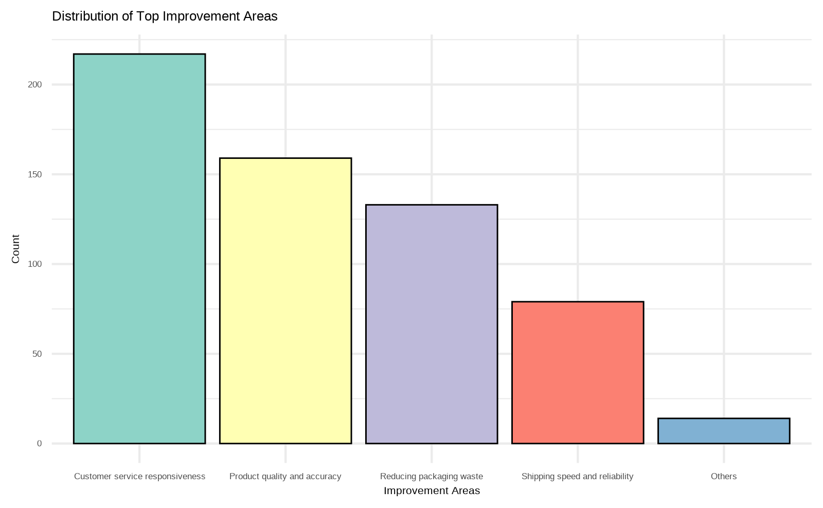 | 23 | Female | Few times a month | Beauty and Personal Care | Yes | Few times a week | Keyword | Multiple pages | 1 | Yes | Sometimes | Found a better price elsewhere | Sometimes | Yes | Occasionally | Yes | 2 | Yes | 1 | 1 | Competitive prices | Reducing packaging waste | Reducing packaging waste |